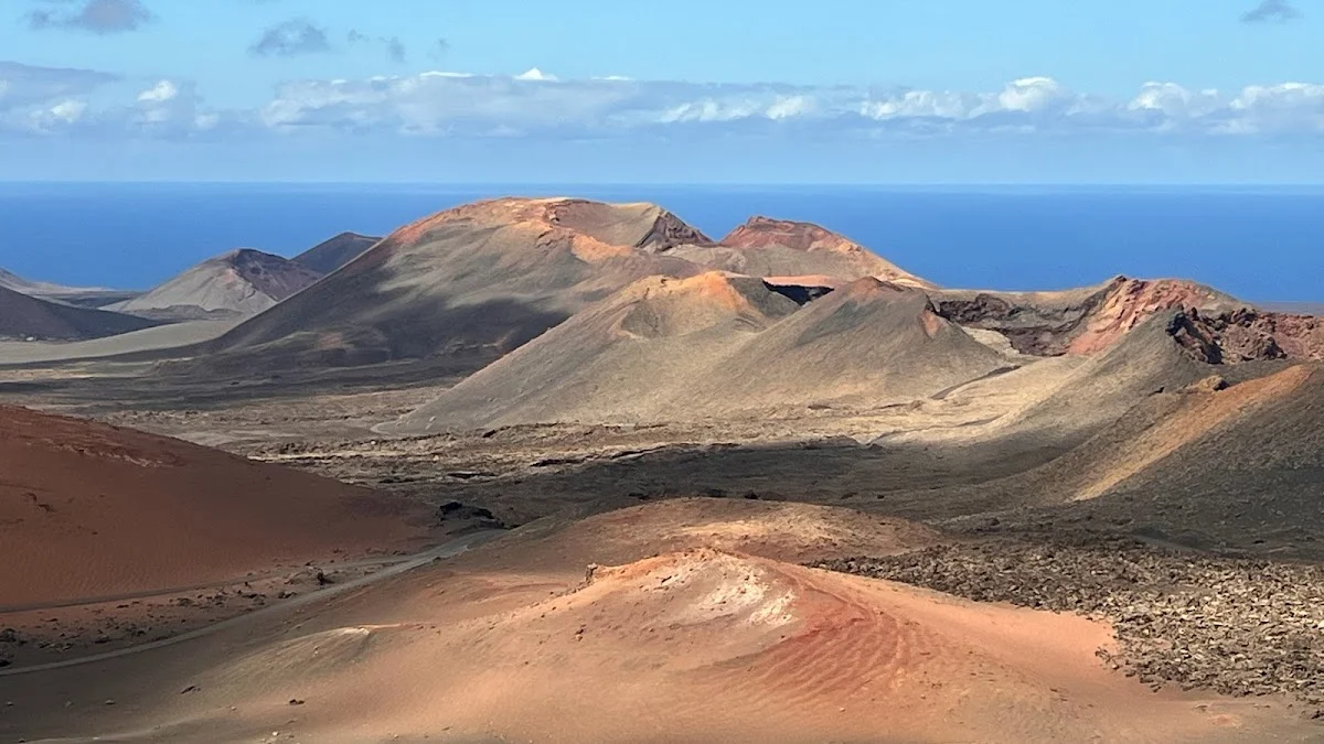 El Parque Nacional de Timanfaya es uno de esos lugares que te dejan sin palabras, un paisaje volcánico único en España que parece sacado de otro planeta. Declarado parque nacional en 1974, este territorio geológico excepcional te envuelve en un mar de lava petrificada y colores ocres, rojos y negros que cuentan la historia de las erupciones volcánicas del siglo XVIII. Lo más fascinante es que el subsuelo todavía conserva calor, algo que podrás comprobar en las demostraciones geotérmicas del islote de Hilario, donde el fuego brota de la tierra con apenas unos segundos de espera.